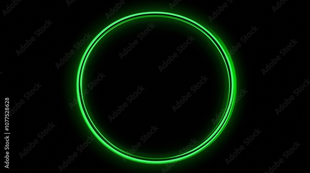 Wall mural green circle on a black background. the circle is glowing and he is a part of a larger image
