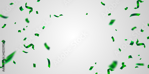 Wall mural : Green confetti and zigzag ribbon falling from above streamers, tinsel vector