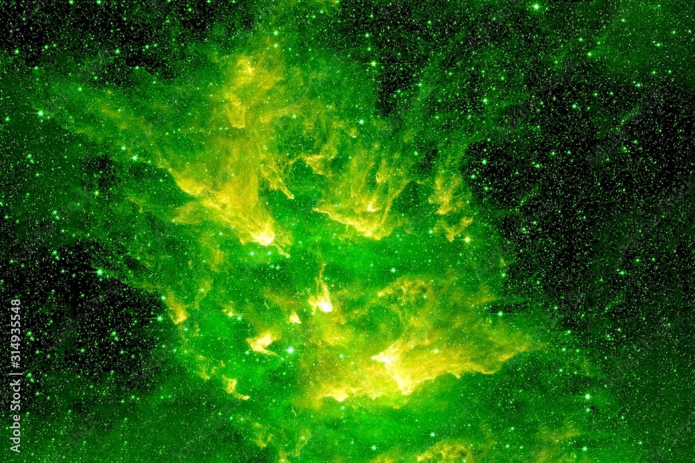 The watermark will not be included on Wall mural.: Green cosmic nebula with bright areas and stars - elements of this image were furnished by nasa -