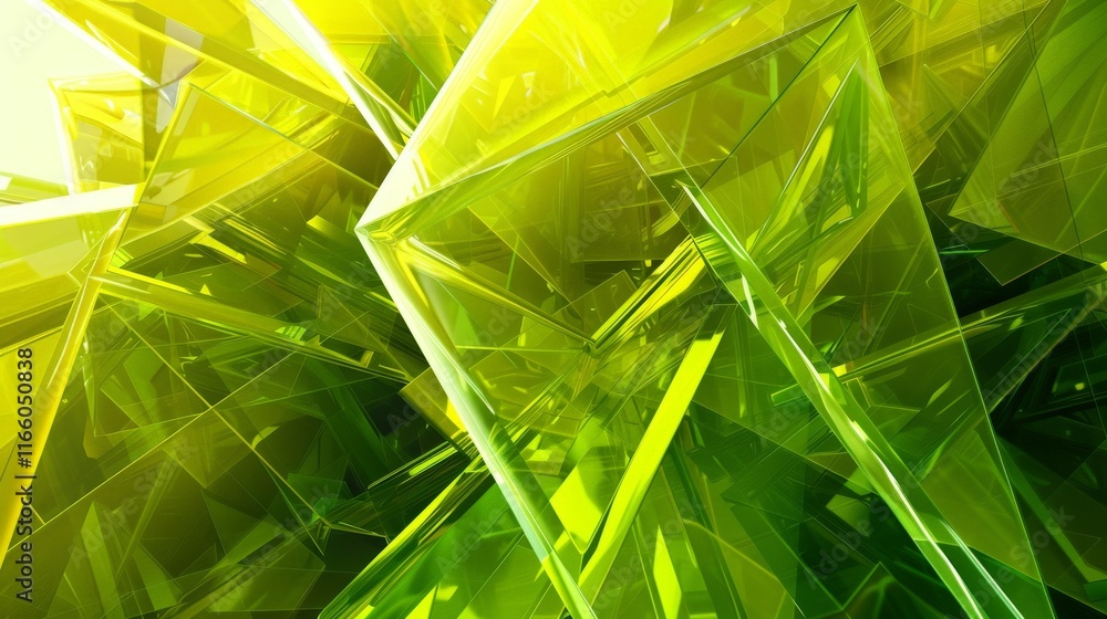 Wall mural : Green crystal prisms intersecting and overlapping, creating a beautiful abstract composition, ideal