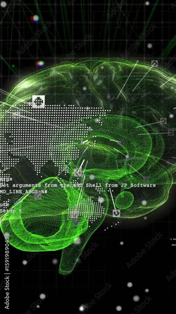 Wall mural green digital brain with data and network connections over world map animation - Wall murals Wall mural green digital brain with data and network connections over world map animation - Wall murals