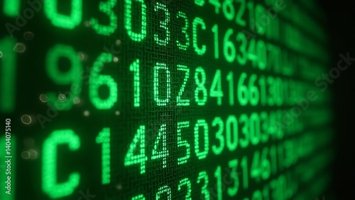 The watermark will not be included on Wall mural.: Green digital code background for technology data security and encryption concept with glowing numbe
