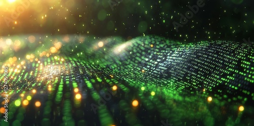 Wall mural : Green digital lines are set against a futuristic abstract background to depict binary code