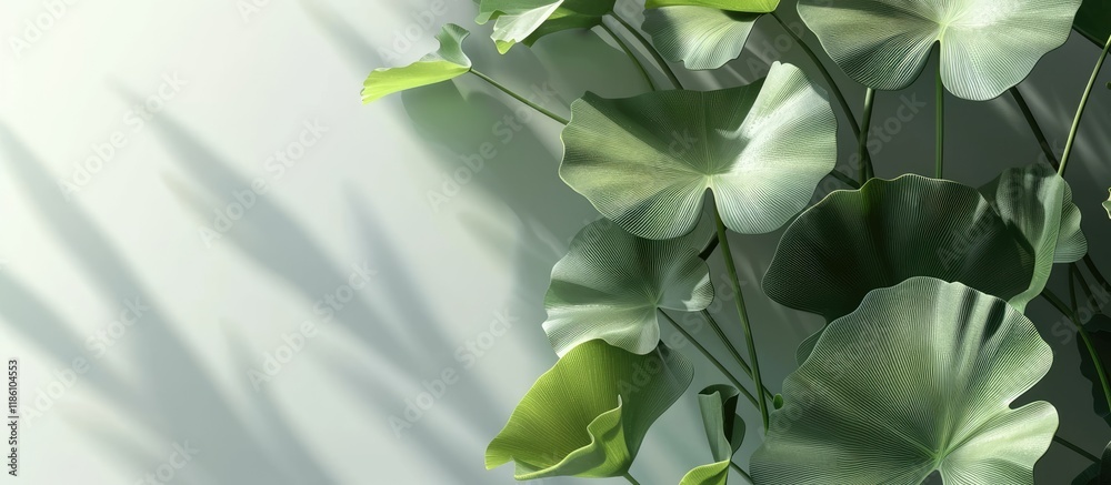 The watermark will not be included on Wall mural.: Green ginkgo leaves in late spring - with copy space image - place for adding text or design