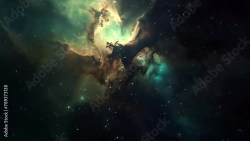 Wall mural green golden deep space galaxy nebula. cinematic celestial background depicting astrology and space