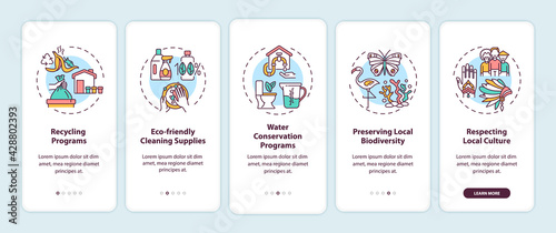 Wall mural green hotel features onboarding mobile app page screen with concepts. recycling programs walkthrough