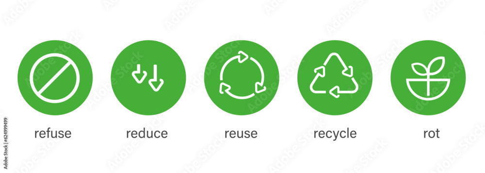 Green icon reduce reuse recycle refuse rot recycling product material symbol set line outline designWall mural