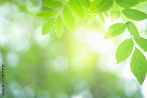 Wall mural green leaf with beautiful bokeh with copy space for text. nature and fresh background concept.