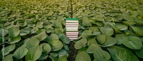 The watermark will not be included on Wall mural.: Green leaves background - lush foliage texture with colorful stripe pattern in field - nature photog