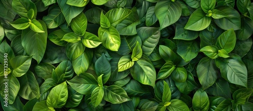 Wall mural green leaves creating a textured background with available copy space image for design and text