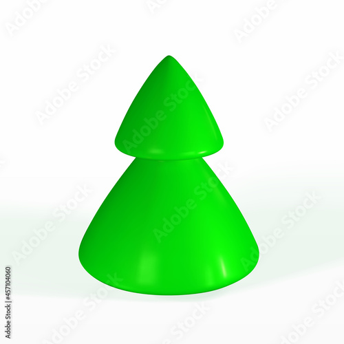 The watermark will not be included on Wall mural.: Green minimalistic 3d render and draw by mesh xmas tree - fir tree with shadow isolated on white back