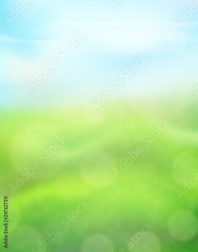 Wall mural green nature vertical background on a blurred of grass and sky and bokeh effect. view with copy spac - Wall murals Wall mural green nature vertical background on a blurred of grass and sky and bokeh effect. view with copy spac - Wall murals