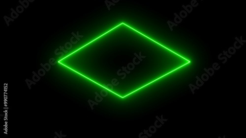 The watermark will not be included on Wall mural.: Green neon rectangle frame loop illustration - abstract glowing neon rectangle border frame on black