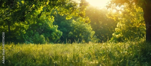 Wall mural green plants in a field a forest and a clear autumn sky. with copy space image. place for adding tex - Wall murals Wall mural green plants in a field a forest and a clear autumn sky. with copy space image. place for adding tex - Wall murals