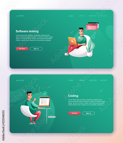 Wall mural : Green programming concept, web engineer at work, vector images - developer programming web site landi