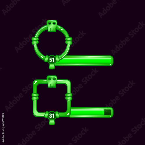 Green skull game ui border frame with level and progress bar for gui asset elements vector illustratWall mural