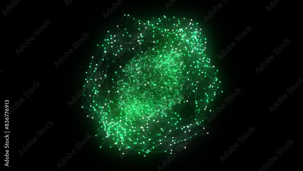 The watermark will not be included on Wall mural.: Green sphere consisting of points and lines - modern wireframe elements - technology grid sphere - 3d r