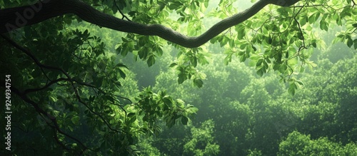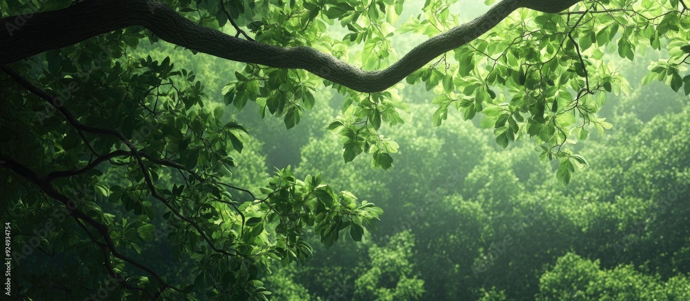 The watermark will not be included on Wall mural.: Green tree branches in a summer woodland botanical backdrop - with copy space image - place for adding