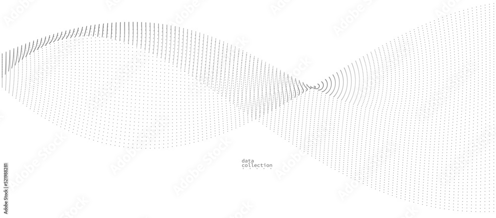 Wall mural grey dots in motion vector abstract background, particles array wavy flow, curve lines of points in  - Wall murals Wall mural grey dots in motion vector abstract background, particles array wavy flow, curve lines of points in - Wall murals