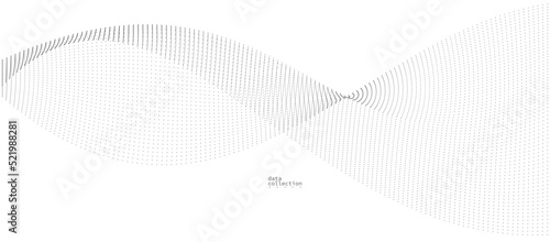 Wall mural : Grey dots in motion vector abstract background, particles array wavy flow, curve lines of points in