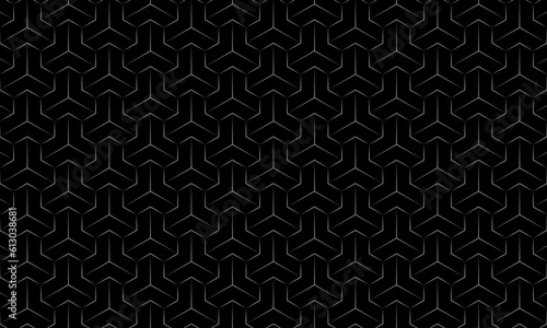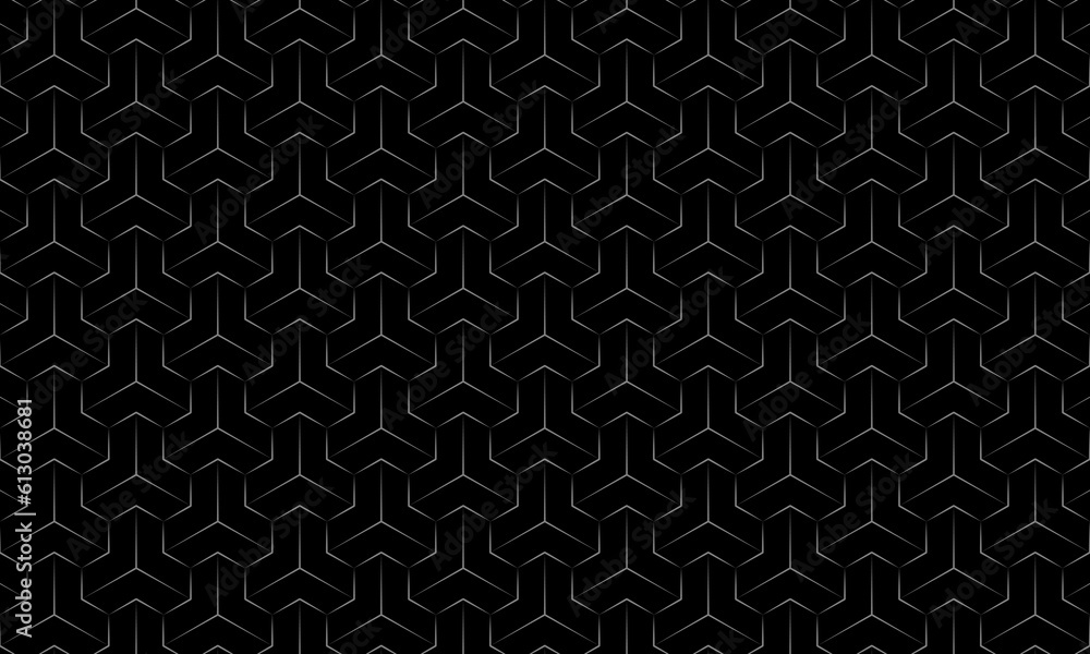 Wall mural grey polygon geometric seamless pattern on black background. vector repeating background.