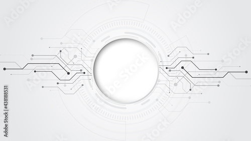 Wall mural grey white abstract technology background with various technology elements hi-tech communication con
