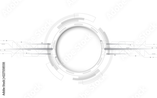 Wall mural : Grey white abstract technology background with various technology elements hi-tech communication con