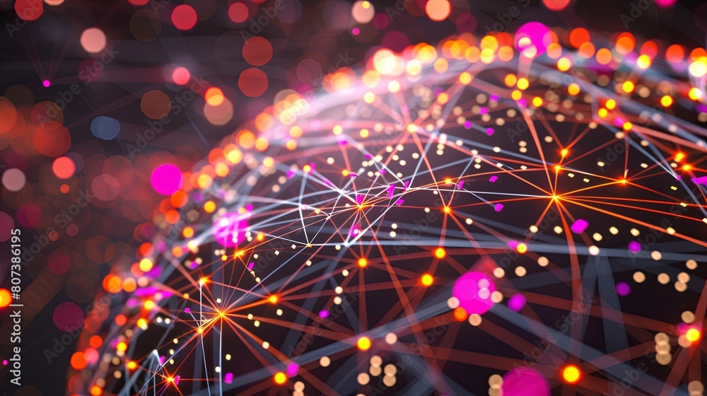Wall mural grid surface. abstract science or technology background. digital background with glowing particles a