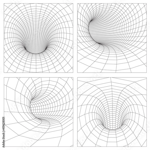 Grid wormhole wireframe tunnel - 3d gravity quantum, vector wormhole illustration - singularity abstraWall mural