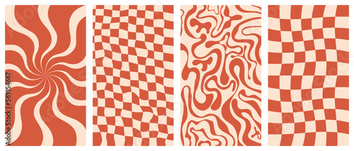 Wall mural groovy hippie 70s vector backgrounds set. chessboard and twisted patterns. backgrounds in trendy ret