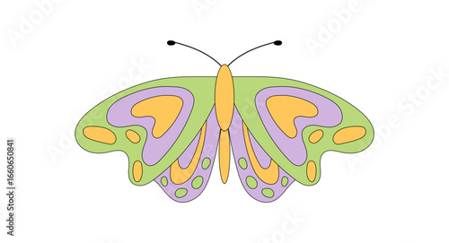 The watermark will not be included on Wall mural.: Groovy retro butterfly icon in funky flat style - colorful abstract shape and psychedelic element for