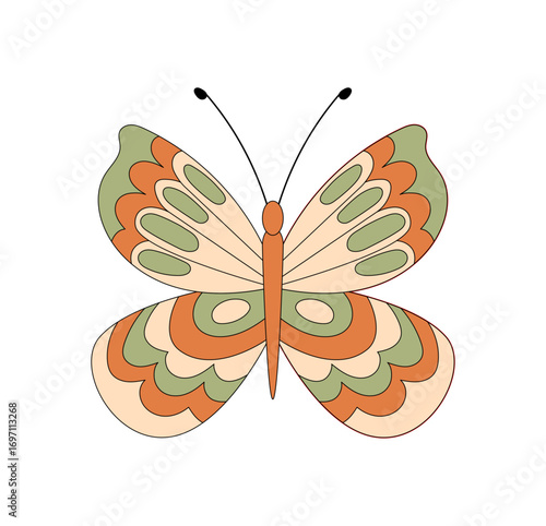 The watermark will not be included on Wall mural.: Groovy retro butterfly in vintage and abstract colorful style - this funky groovy element draws inspi