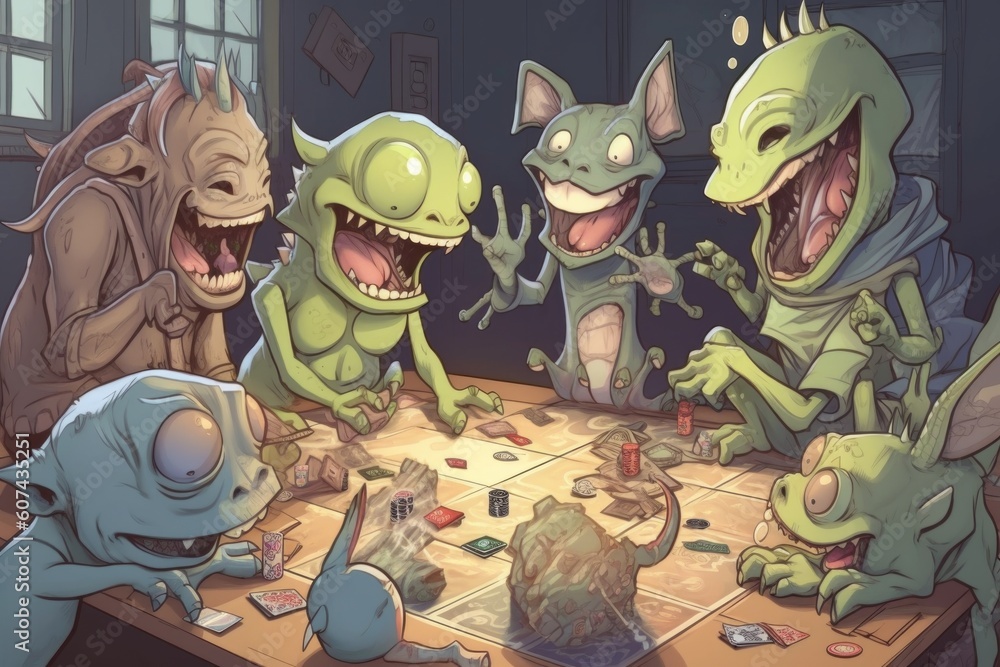 Wall mural group of aliens playing a board game and laughing together, created with generative ai - Wall murals Wall mural group of aliens playing a board game and laughing together, created with generative ai - Wall murals