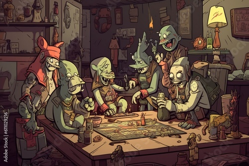 The watermark will not be included on Wall mural.: Group of aliens playing futuristic version of a classic game, created with generative ai
