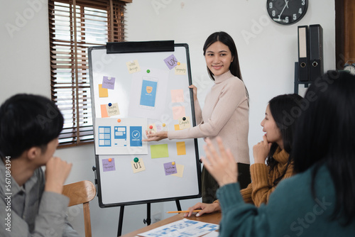 The watermark will not be included on Wall mural.: Group of creative developers programming websites for mobile applications - user experience design co