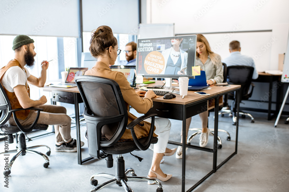 The watermark will not be included on Wall mural.: Group of diverse and creative colleagues working on computers in the modern office or coworking spac