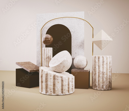 Wall mural : Group of object in 3d rendering scene with stones materials
