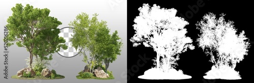 The watermark will not be included on Wall mural.: Group of trees among the rocks - cutout trees isolated on transparent background via an alpha channel