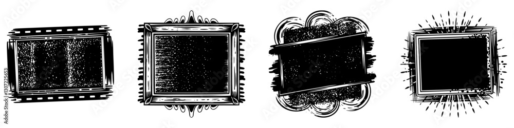 The watermark will not be included on Wall mural.: Grunge frame - set of empty frames - frames in doodle style - vector illustration