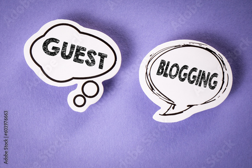 The watermark will not be included on Wall mural.: Guest blogging - two speech bubbles with text on a violet background