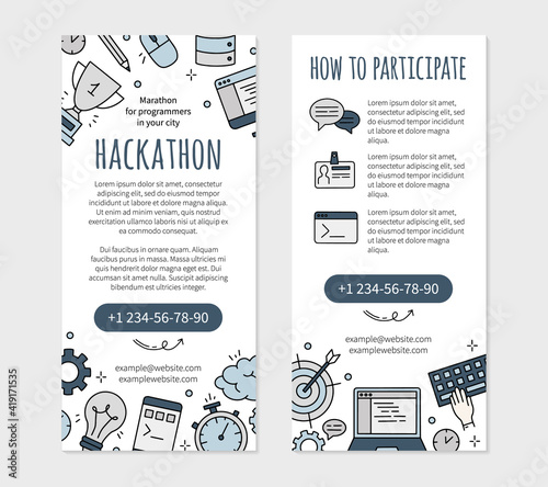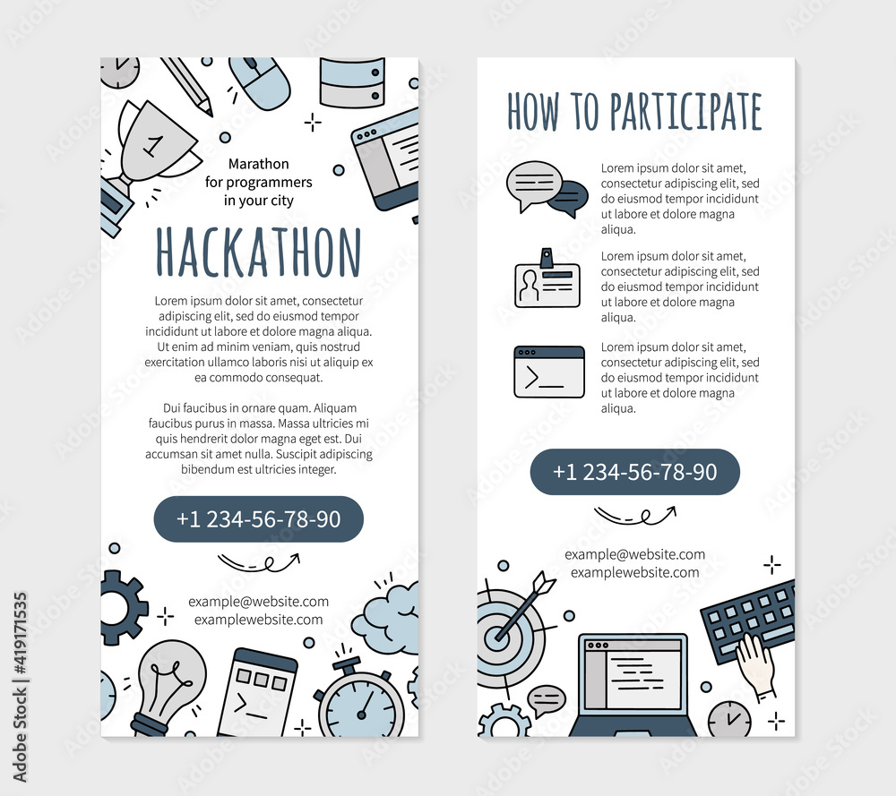 The watermark will not be included on Wall mural.: Hackathon and datathon leaflet or flyer for printing in doodle style - vector template for the event