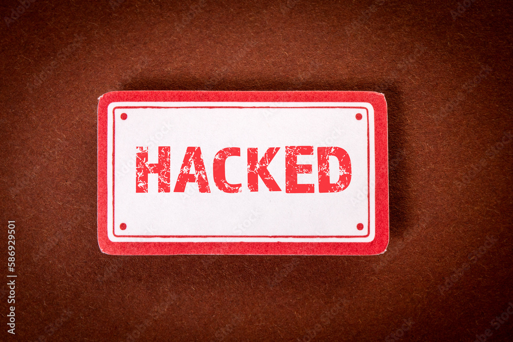 Hacked - sticky notes with text on brown backgroundWall mural