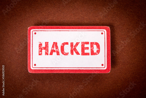 Wall mural hacked. sticky notes with text on brown background