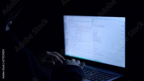 Wall mural hacker are hacking program on internet with laptop in dark room - Wall murals Wall mural hacker are hacking program on internet with laptop in dark room - Wall murals