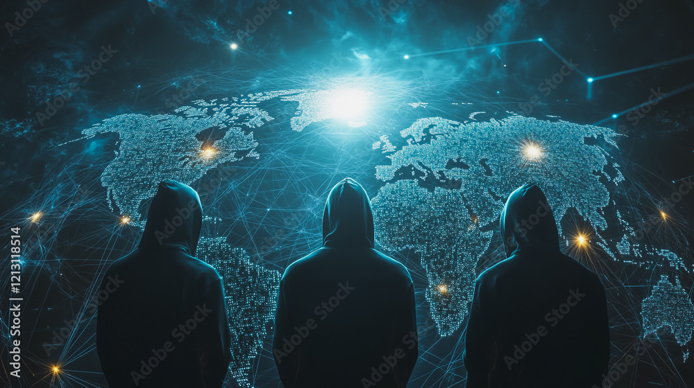 The watermark will not be included on Wall mural.: Hacker are planning to hack and attack networks and cyber security systems - team people innovation co