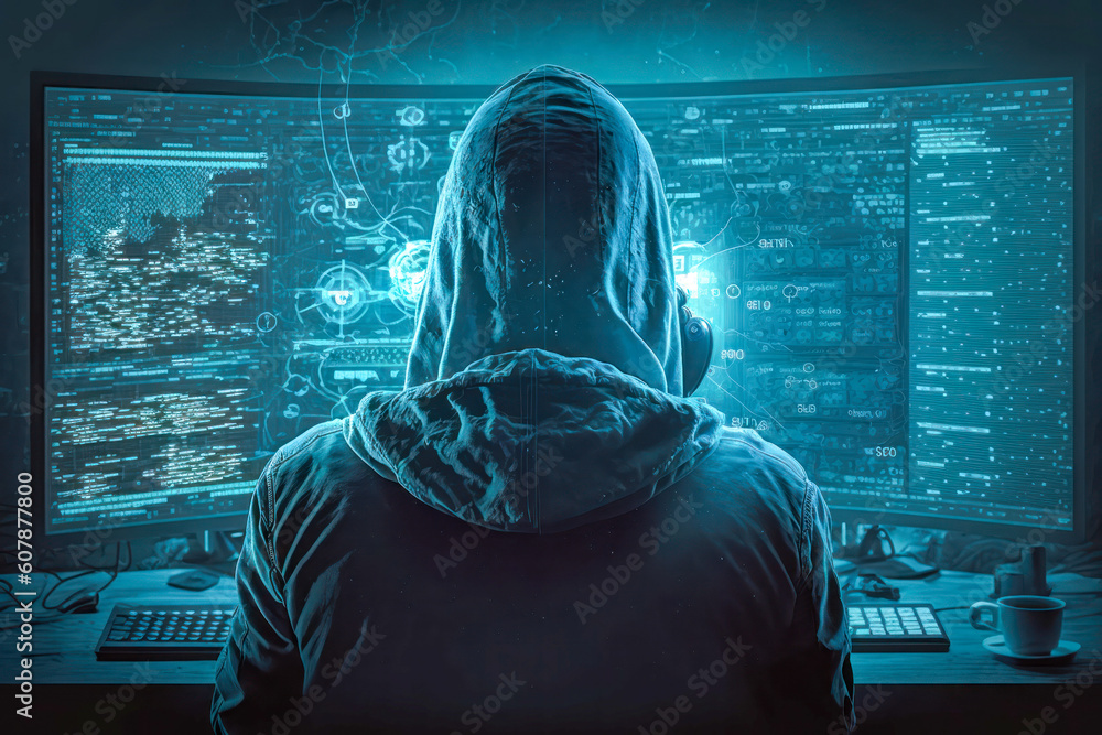 The watermark will not be included on Wall mural.: Hacker at work with gui around - generative ai -