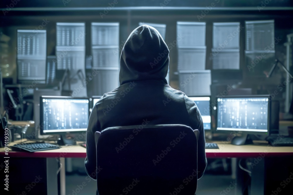Wall mural hacker back view computer cyberspace security criminal technology burglar coding internet fraud dang - Wall murals Wall mural hacker back view computer cyberspace security criminal technology burglar coding internet fraud dang - Wall murals
