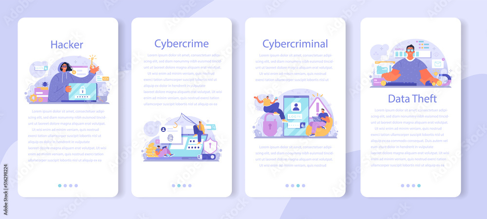 Wall mural hacker mobile application banner set. cyber attack, thief stealing personal - Wall murals Wall mural hacker mobile application banner set. cyber attack, thief stealing personal - Wall murals
