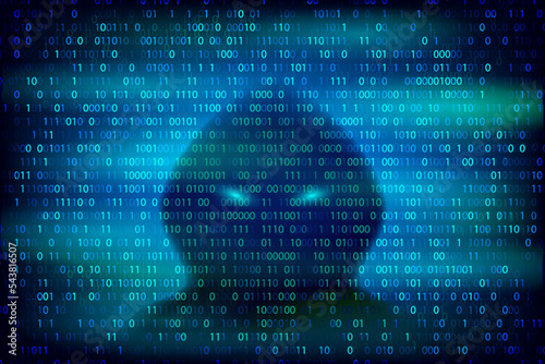The watermark will not be included on Wall mural.: Hacker silhouette on the blue background with binary code textur