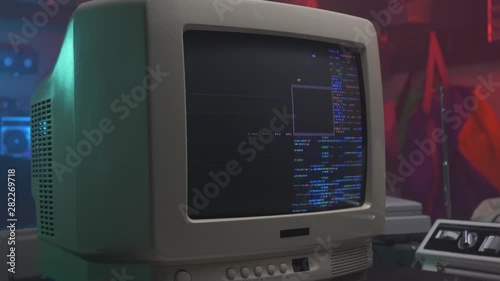 Wall mural hacking screen with coding on a retro old computer monitor or tv from the 90s 80s - Wall murals Wall mural hacking screen with coding on a retro old computer monitor or tv from the 90s 80s - Wall murals